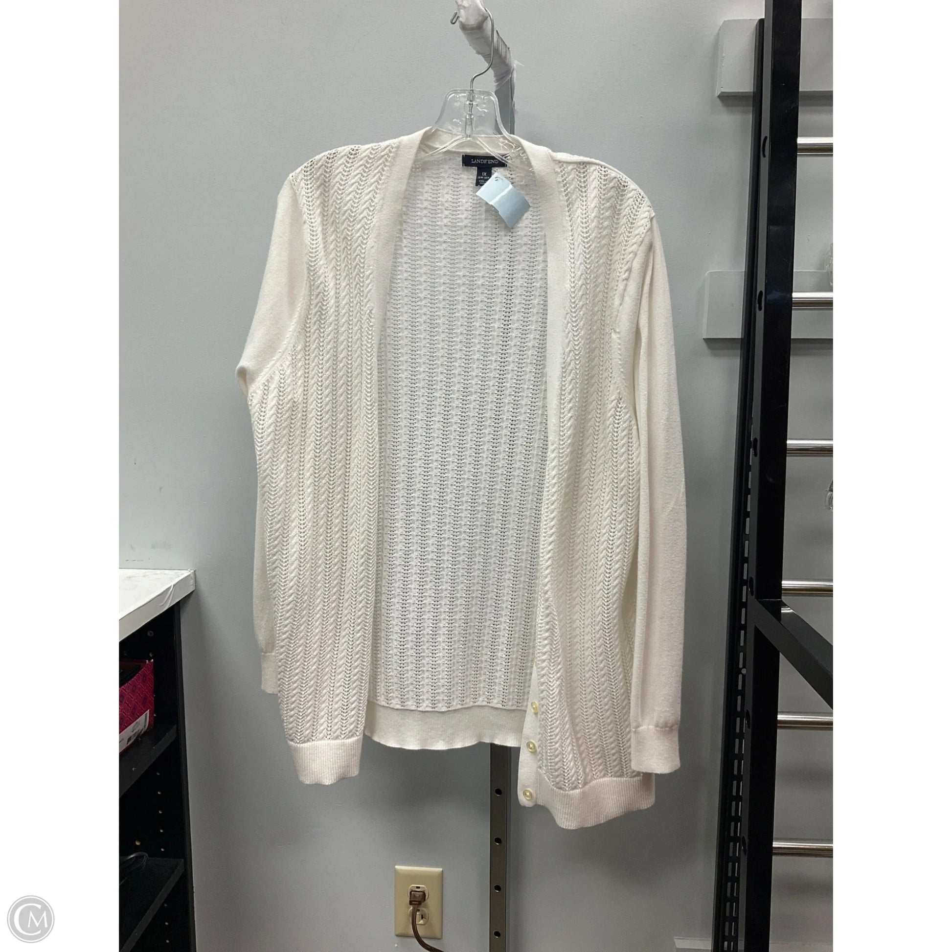 Wrap yourself in the luxurious softness of this Lands' End white sweater cardigan in size 1X. Experience timeless elegance and cozy comfort.