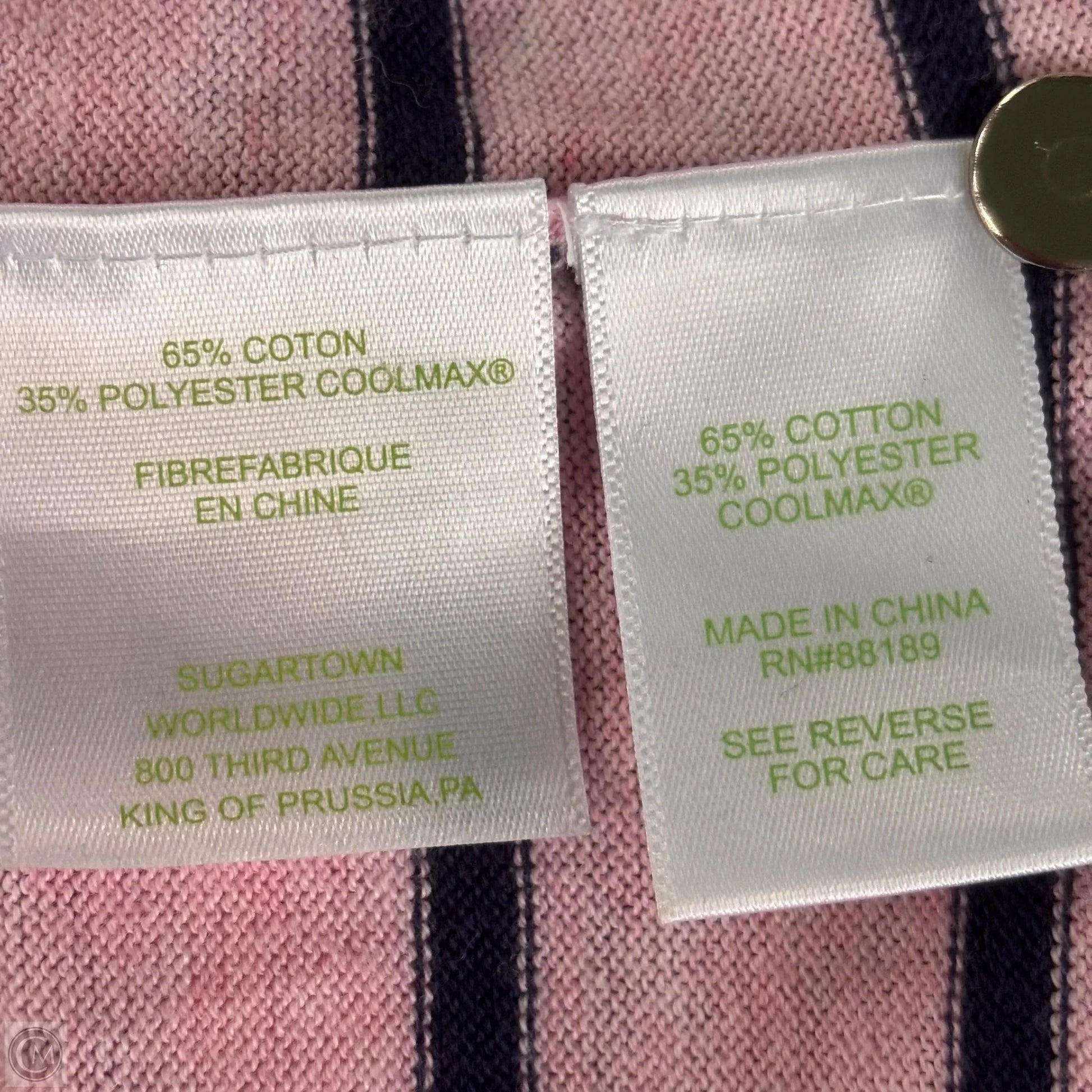 Other Info: PINK/NAVY/BUTTONS ON SLEEVES