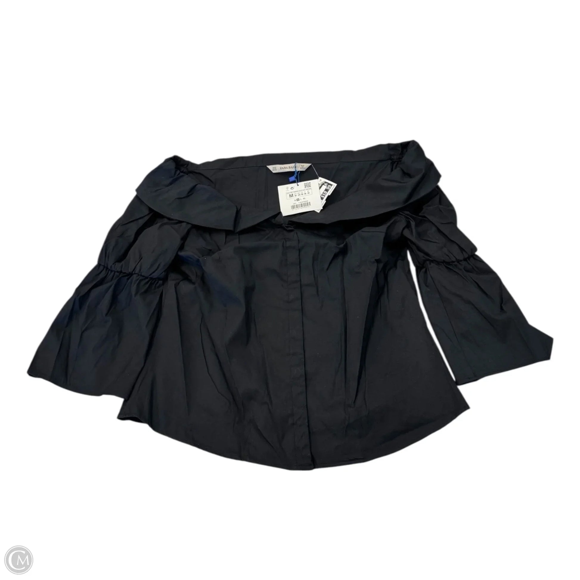 Top 3/4 Sleeve By Zara Basic In Black, Size: M