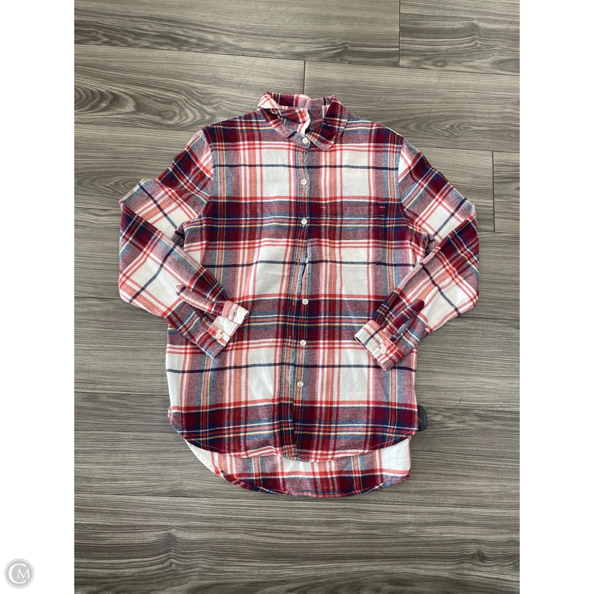 Top Long Sleeve Basic By Gap In Plaid Pattern, Size: M