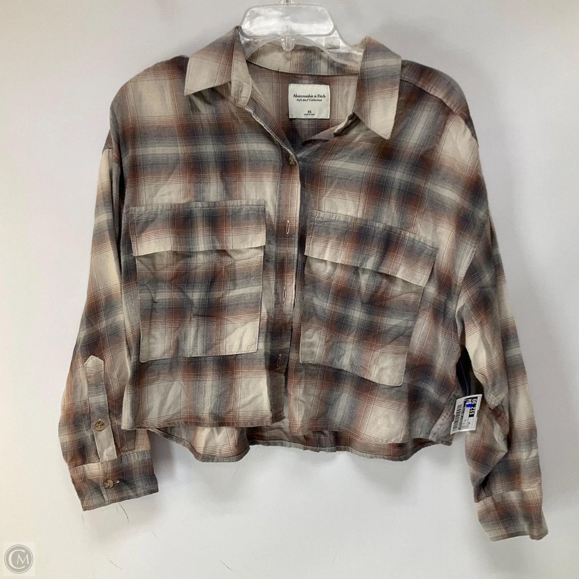 Top Long Sleeve By Abercrombie And Fitch In Grey & Tan, Size: Xs