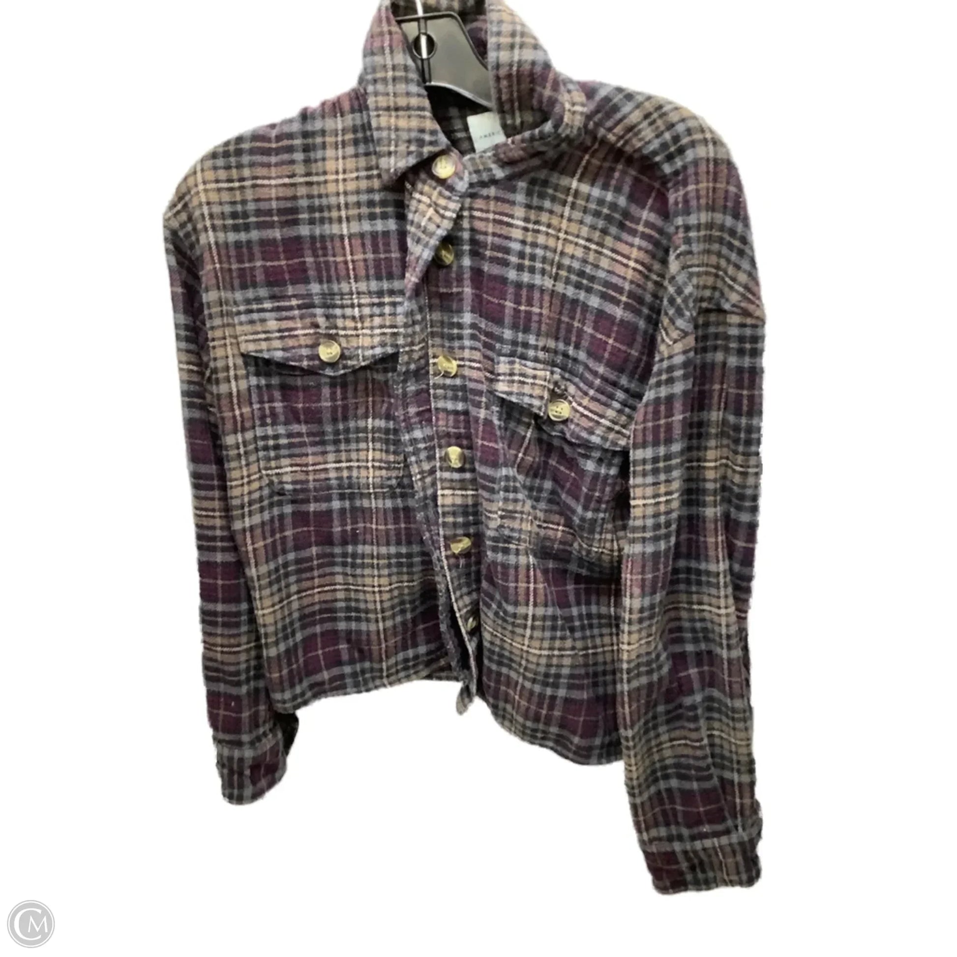 Top Long Sleeve By American Eagle In Plaid Pattern, Size: S