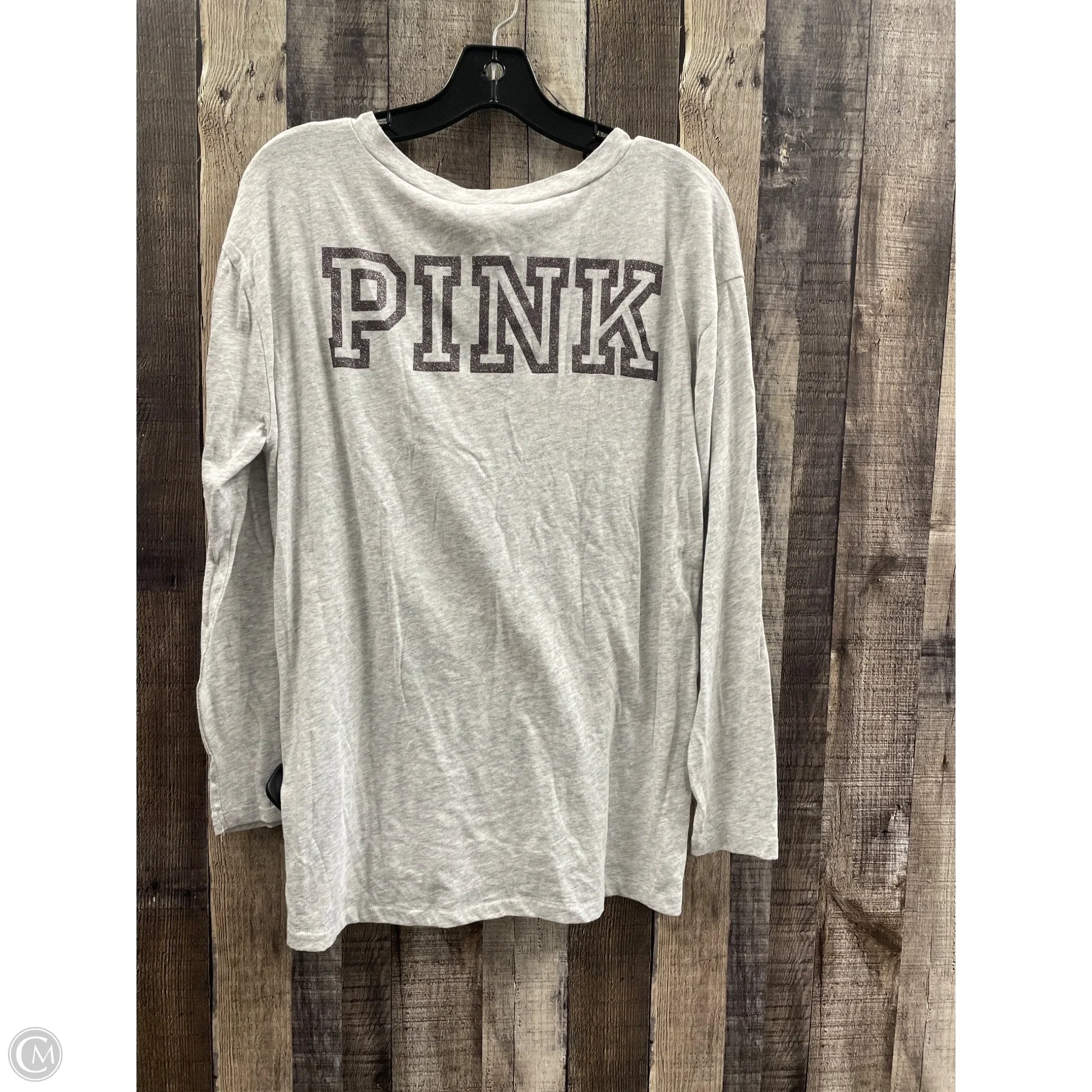 Top Long Sleeve By Pink In Grey, Size: S