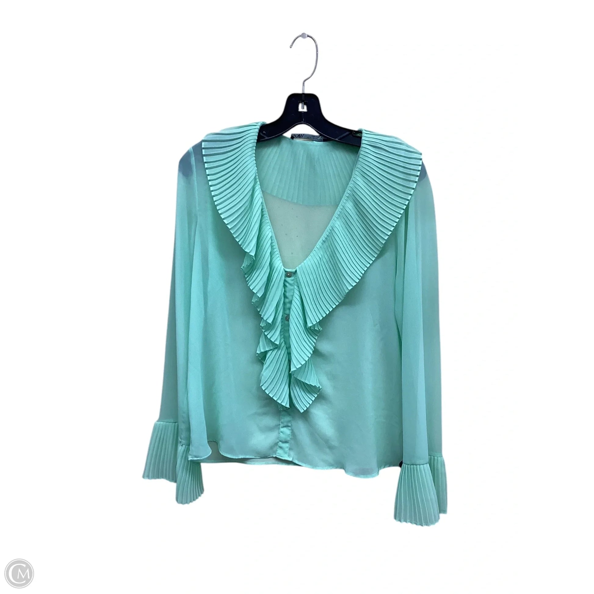 Top Long Sleeve By Zara In Green, Size: M