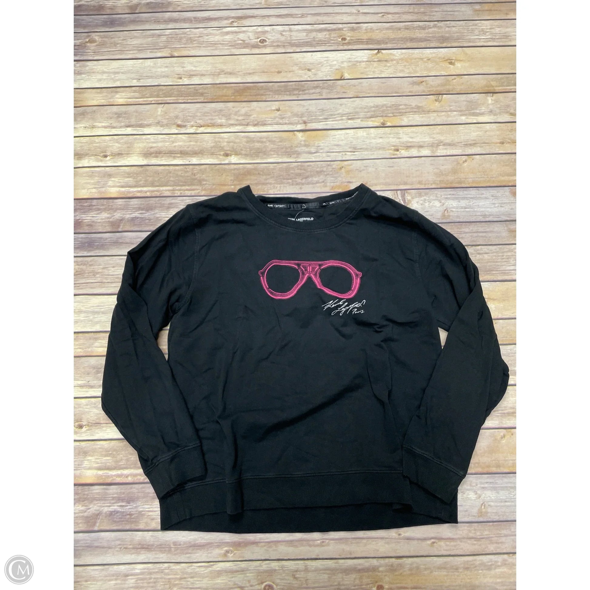 Top Long Sleeve Designer By Karl Lagerfeld In Black, Size: Xl