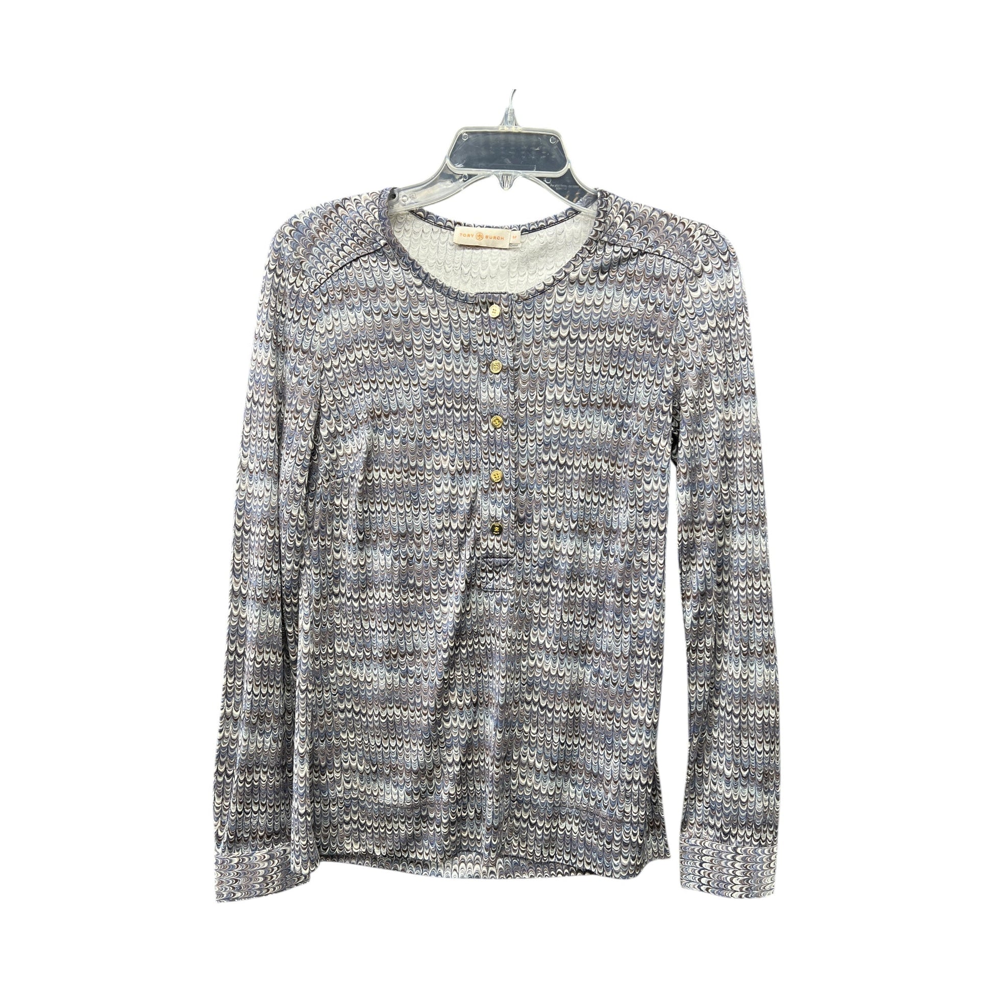 Wrap yourself in cozy luxury with this exquisite Tory Burch top in soothing blue. Size S for a perfect fit. Embrace elegance.