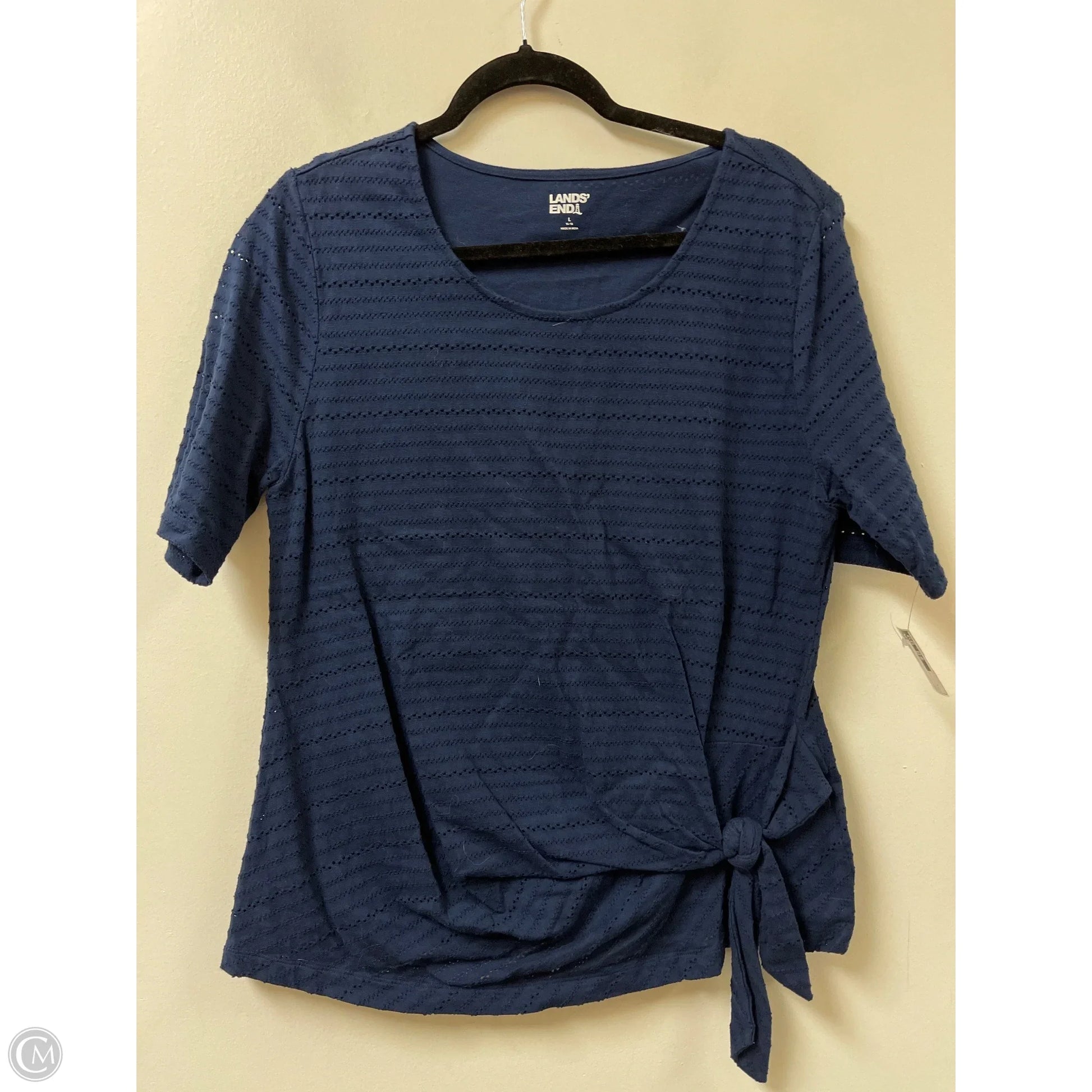 Behold the Navy Top Short Sleeve by Lands' End in size L - a classic twist to casual comfort!