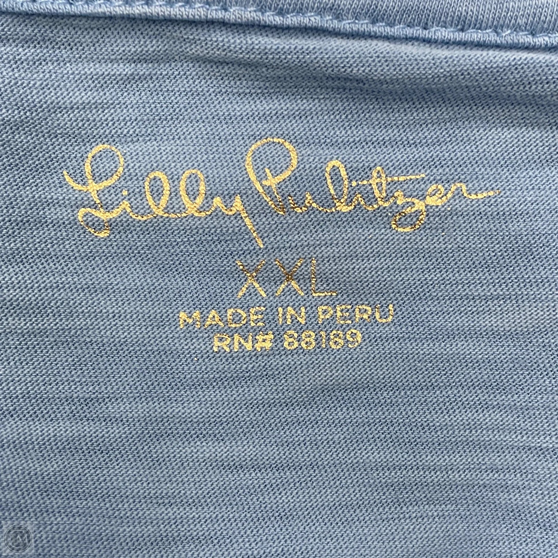 Top Short Sleeve Designer By Lilly Pulitzer In Blue, Size: Xxl