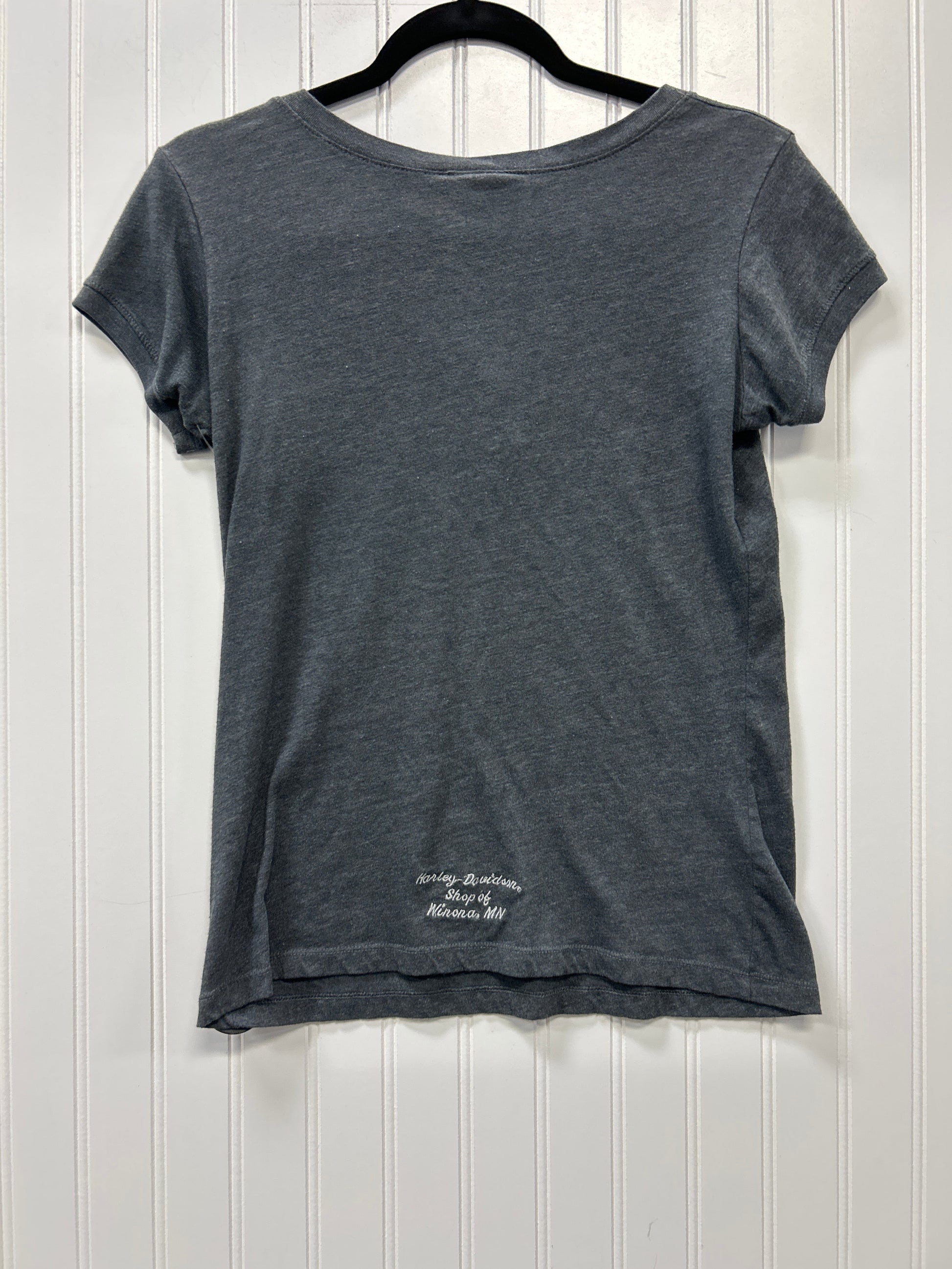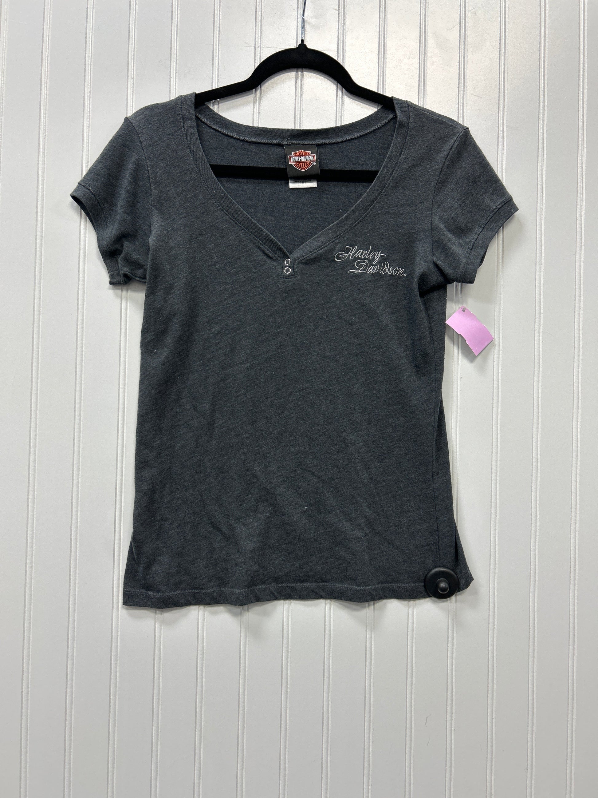 Harley Davidson Top in sleek grey, Size M. Ride in style with this modern piece. Quality fabric, comfortable fit, and iconic brand appeal. Perfect for urban adventures.