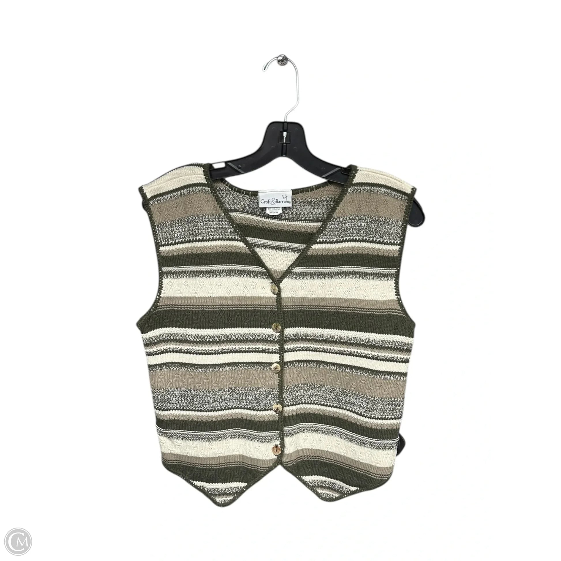 Vest Sweater By Croft And Barrow In Cream & Green, Size: M