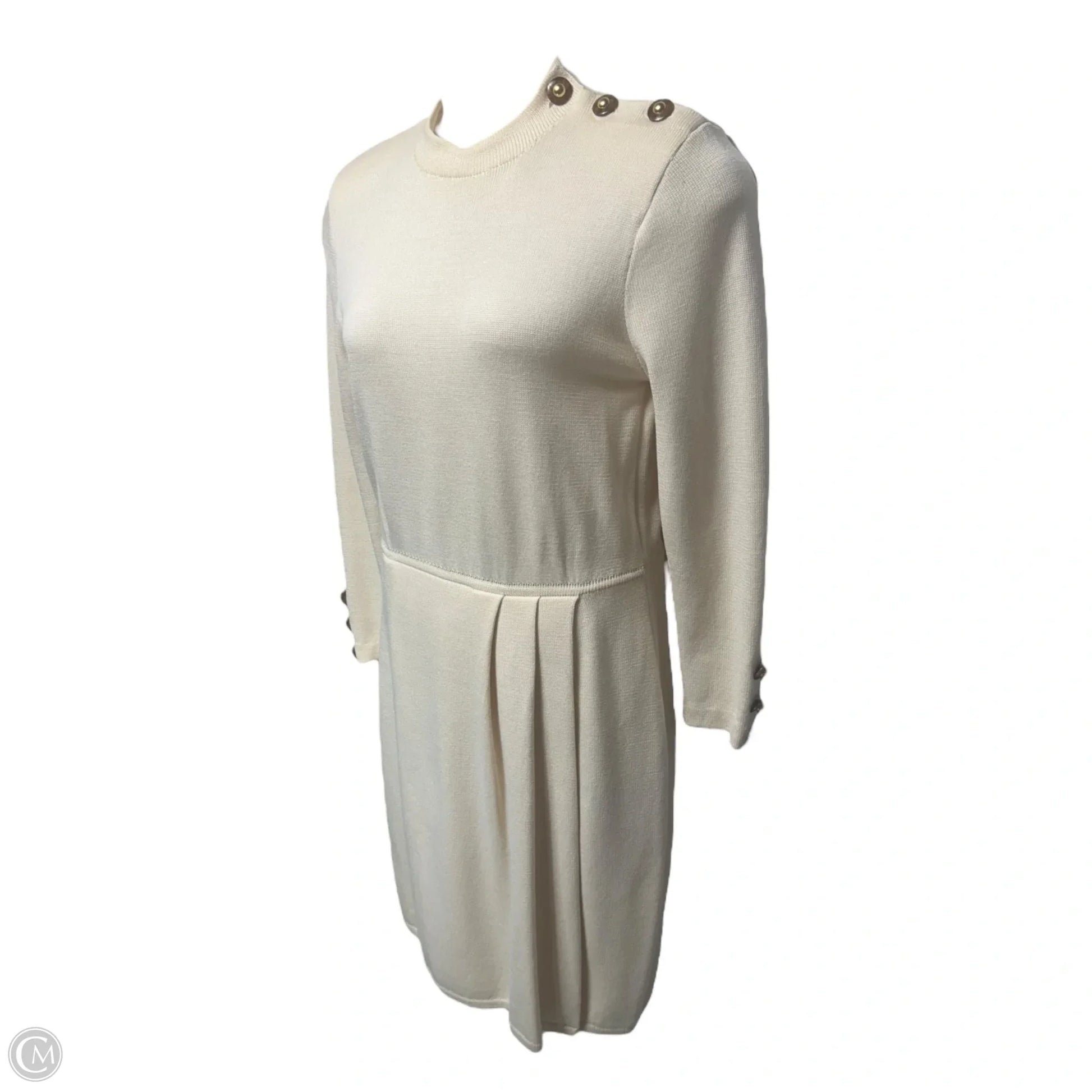 Vintage Knit Midi Dress Luxury Designer By St John Collection In Cream, Size: 8