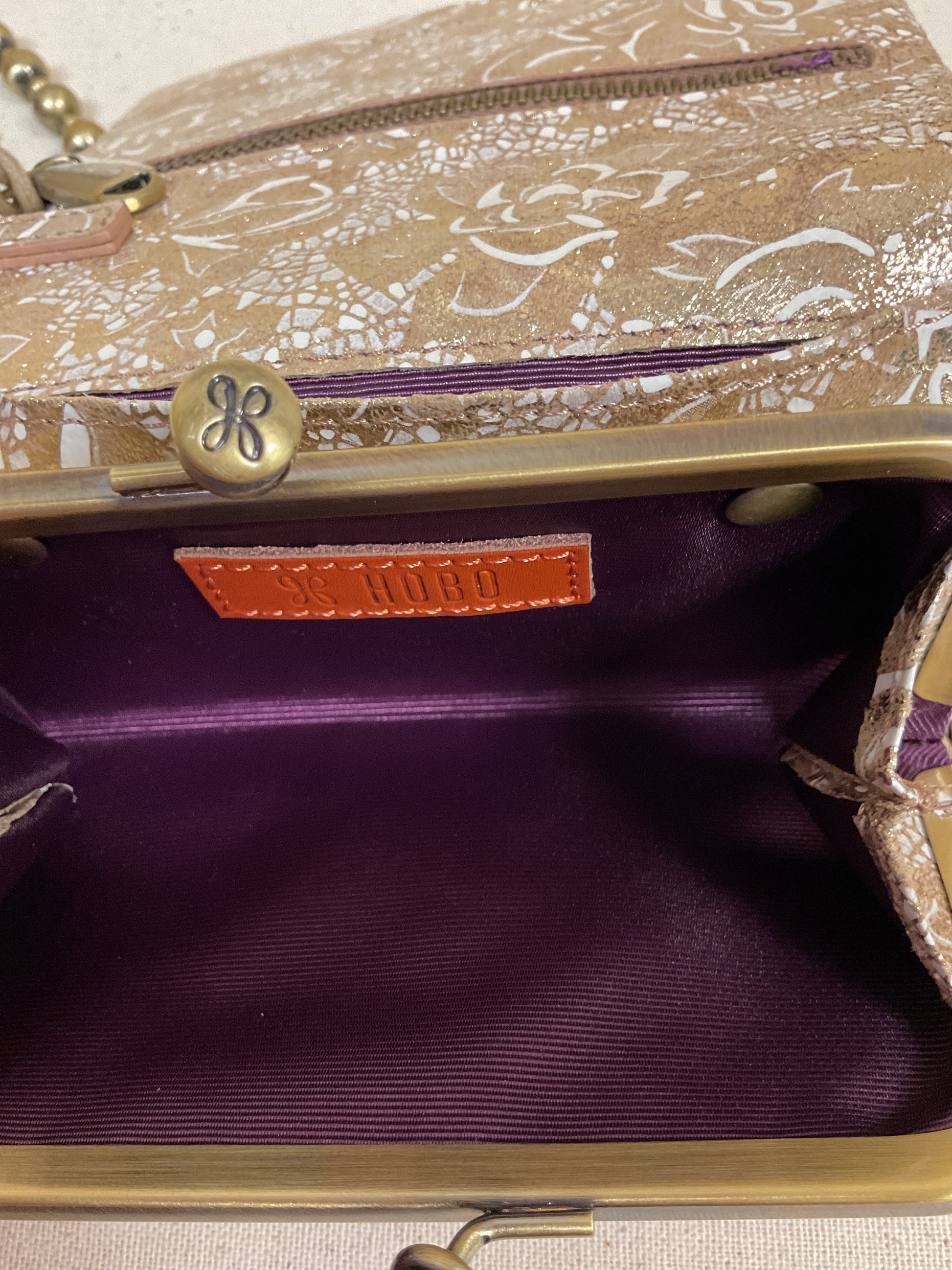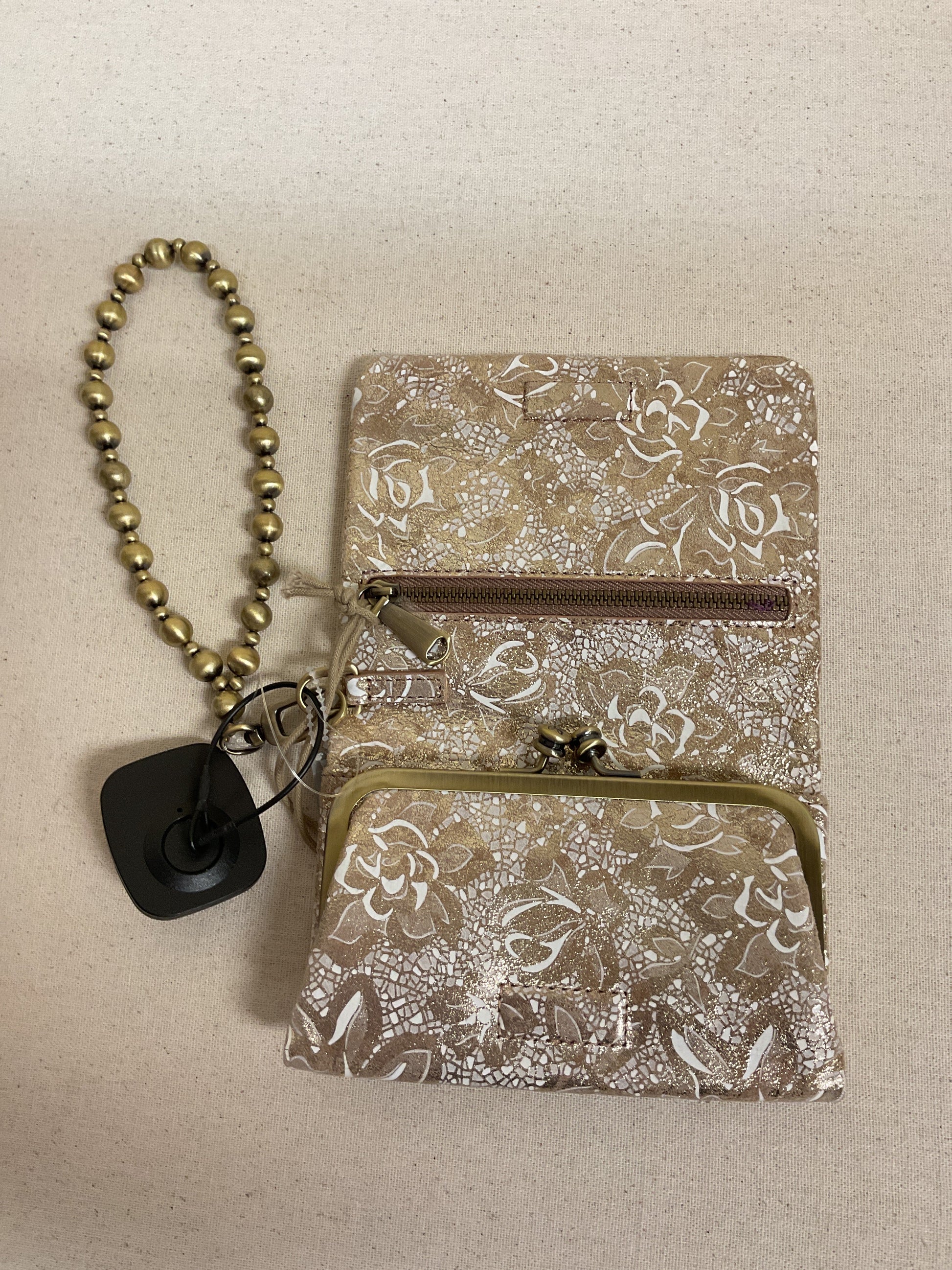 Crafted in shimmering gold, this Hobo Intl wallet in size small exudes understated elegance. Its compact design pairs function with style effortlessly.